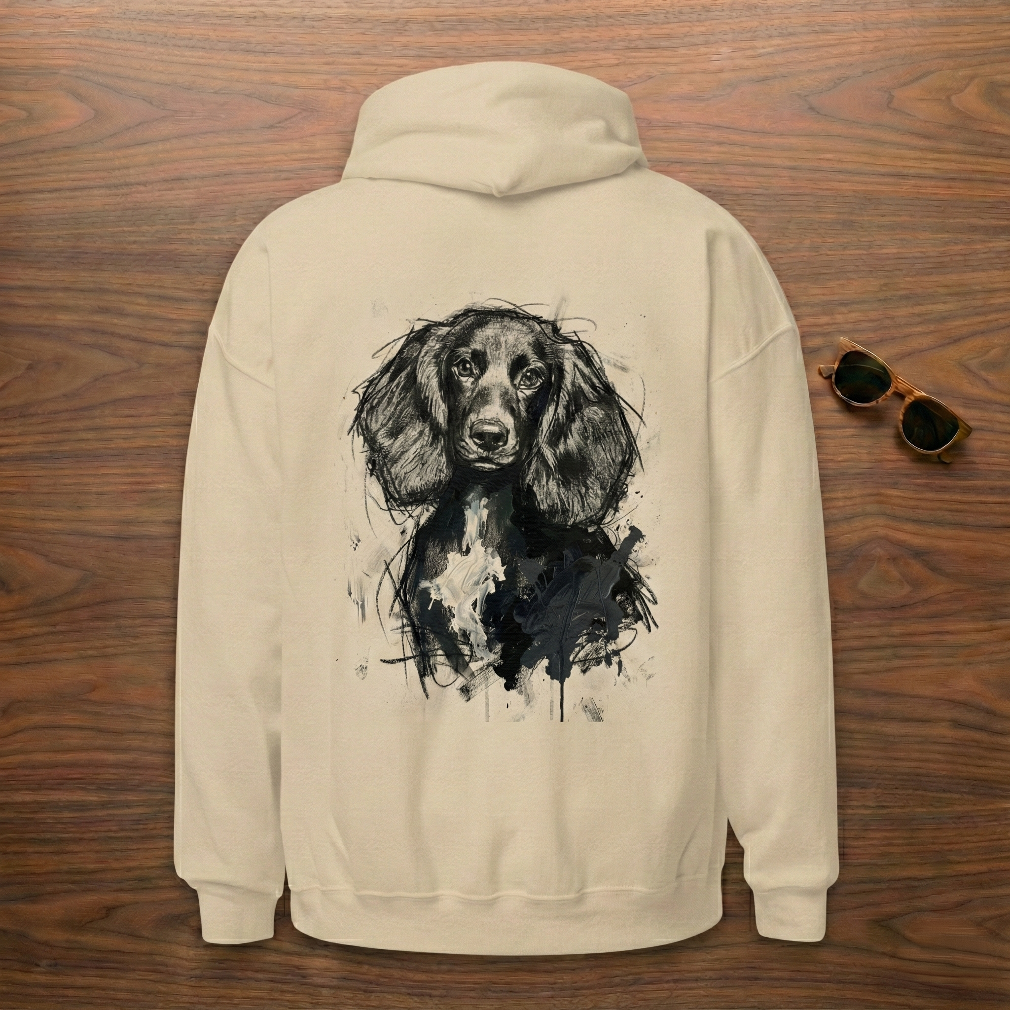 We take the custom portrait of your pet and print it large, gallery-style, on the back of this ultra-soft hoodie. Presented in our signature Vintage Sand color, it provides a neutral, stylish backdrop that makes your pet's colors pop.